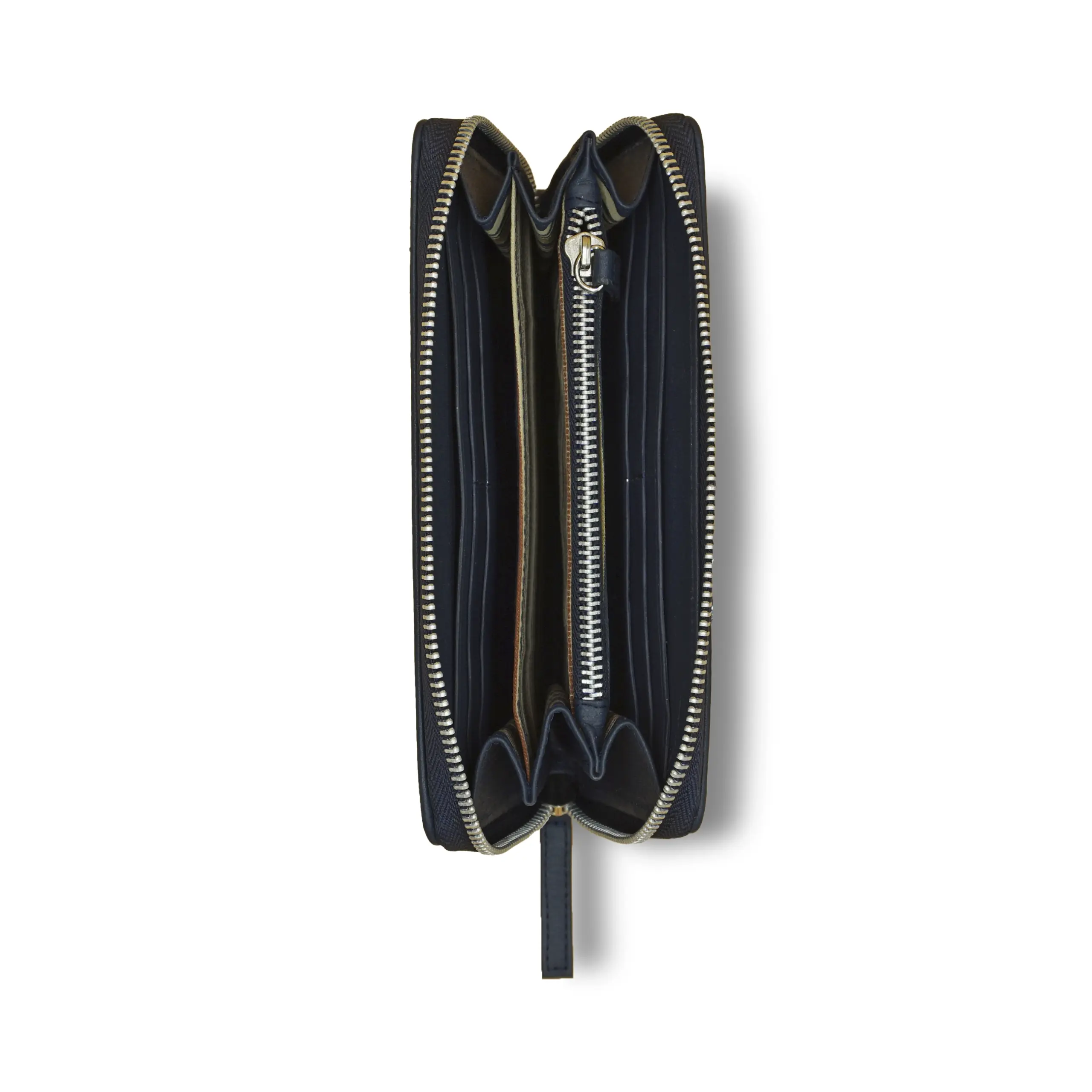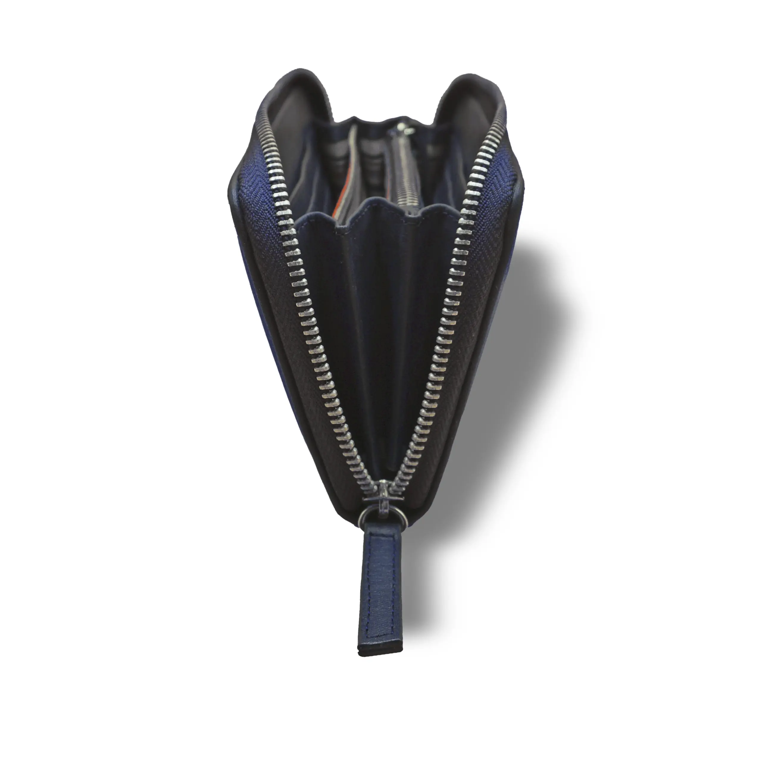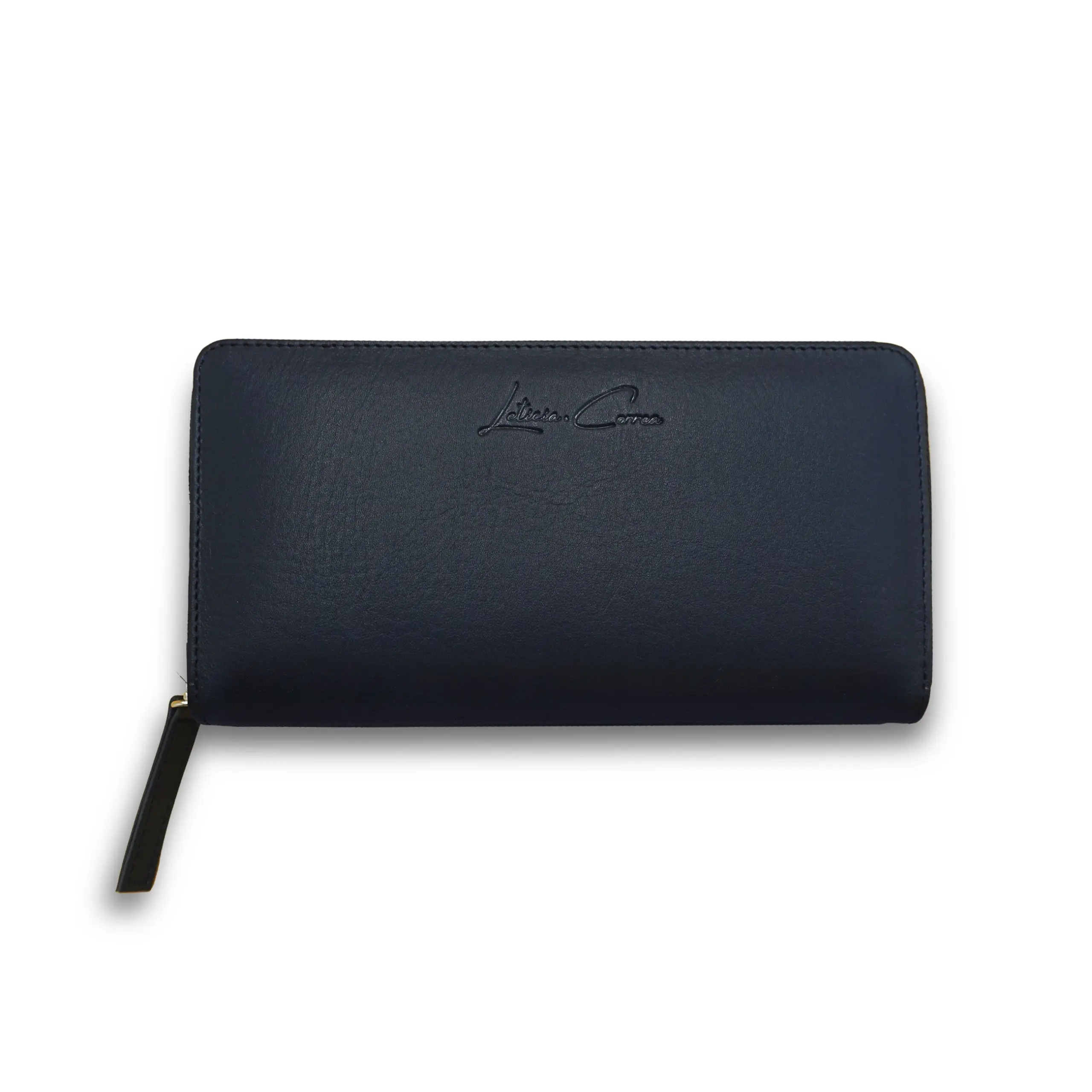 Cartera de piel Nappa en color azul, elaborada con cuero de res cuidadosamente seleccionado por su suavidad incomparable y resistencia natural.