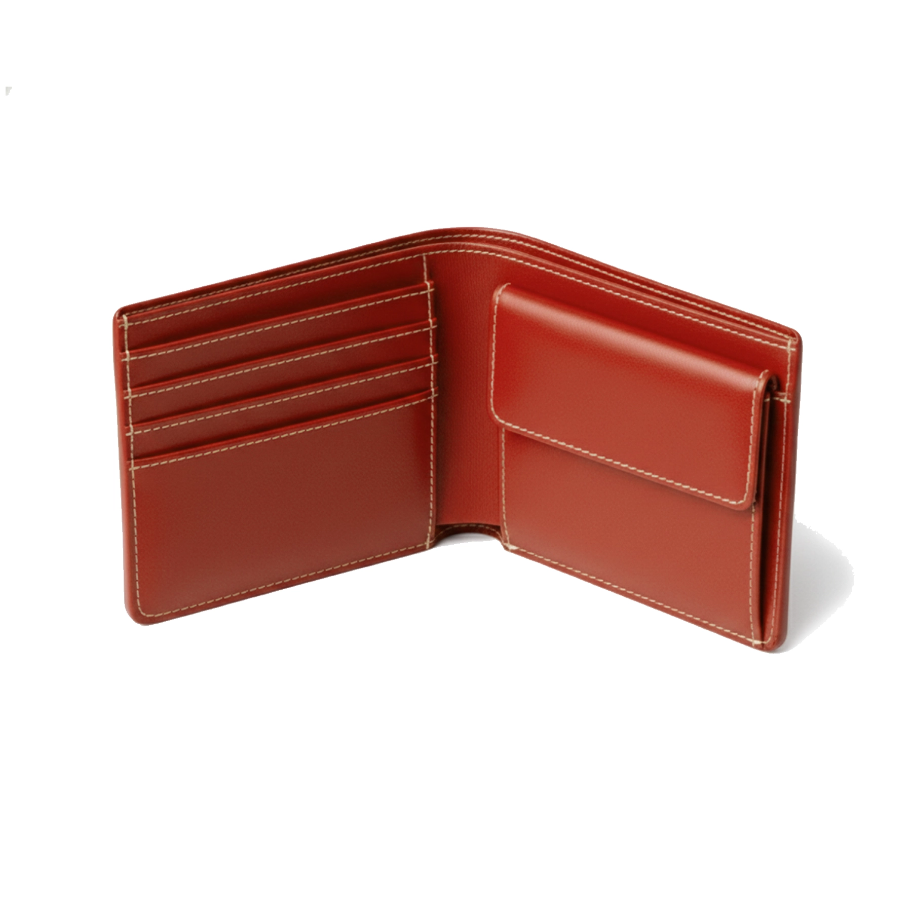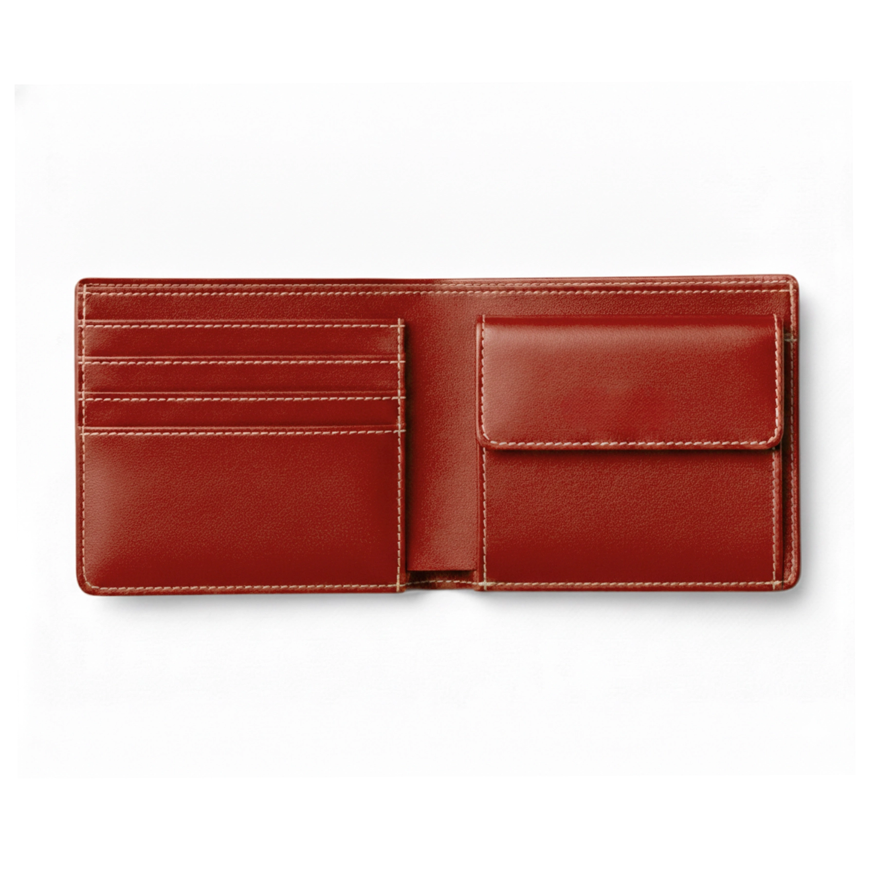 Cartera de piel Nappa en color rojo, elaborada con cuero de res cuidadosamente seleccionado por su suavidad al tacto y resistencia natural.