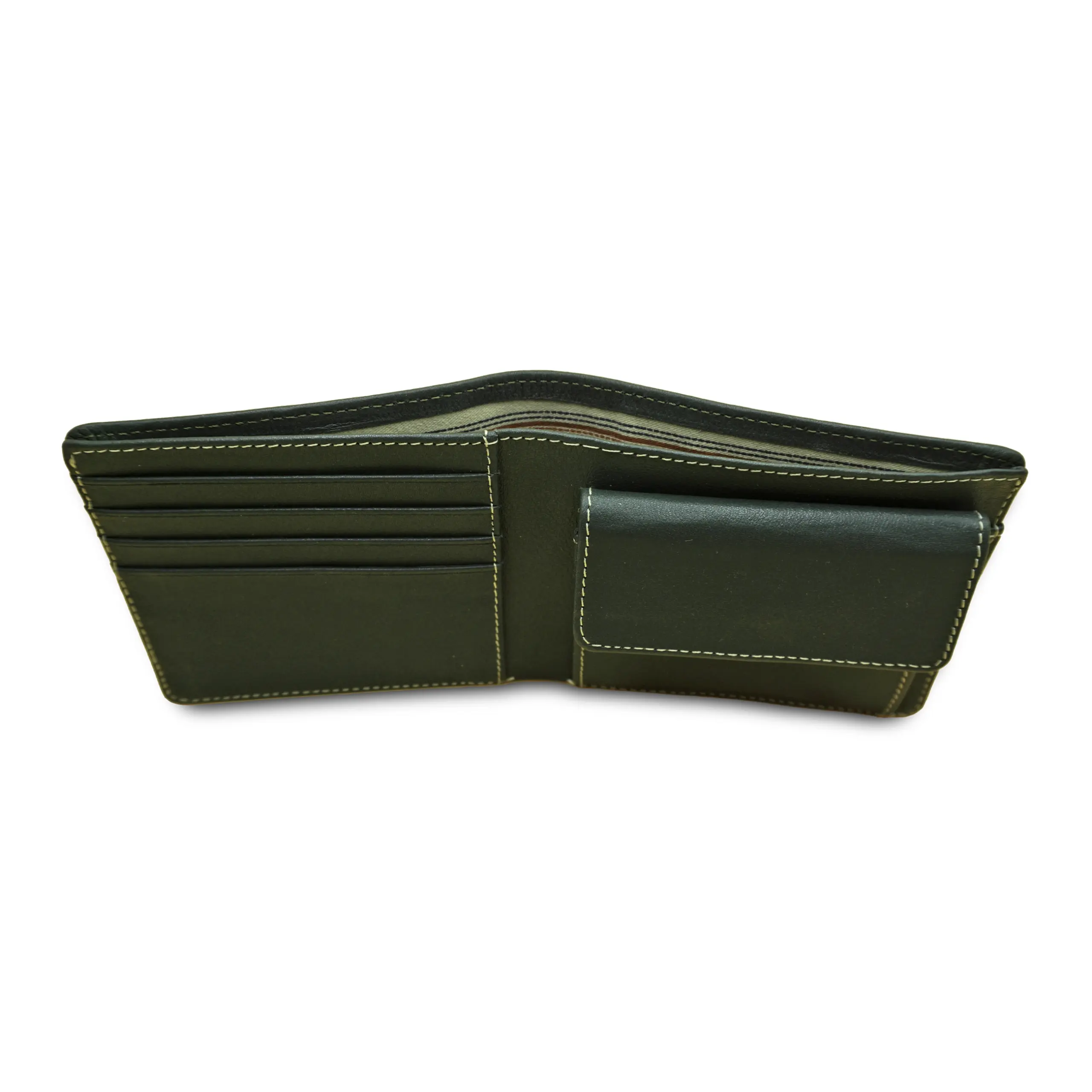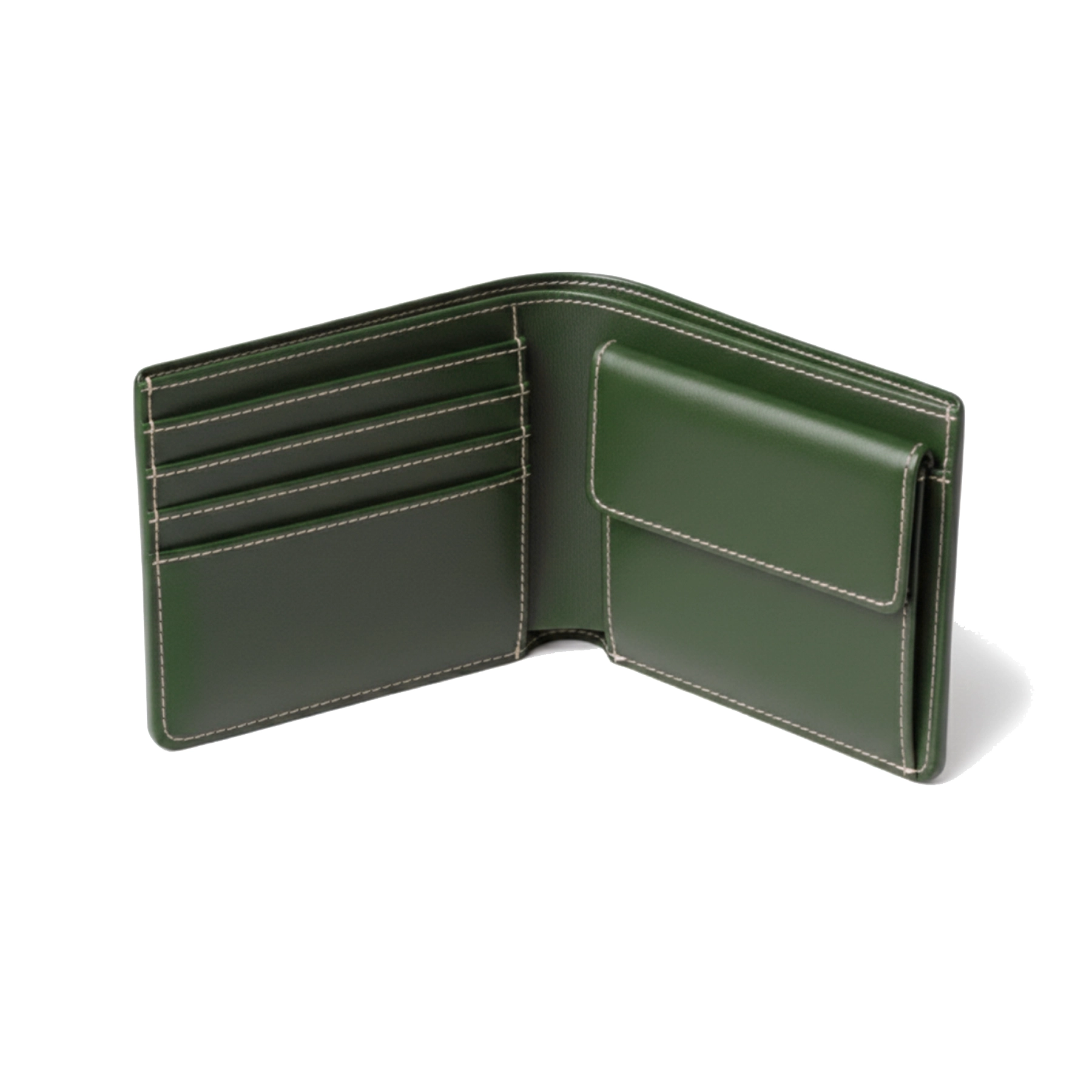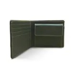 Cartera de piel Nappa en color verde, elaborada con cuero de res cuidadosamente seleccionado por su suavidad al tacto y resistencia natural.