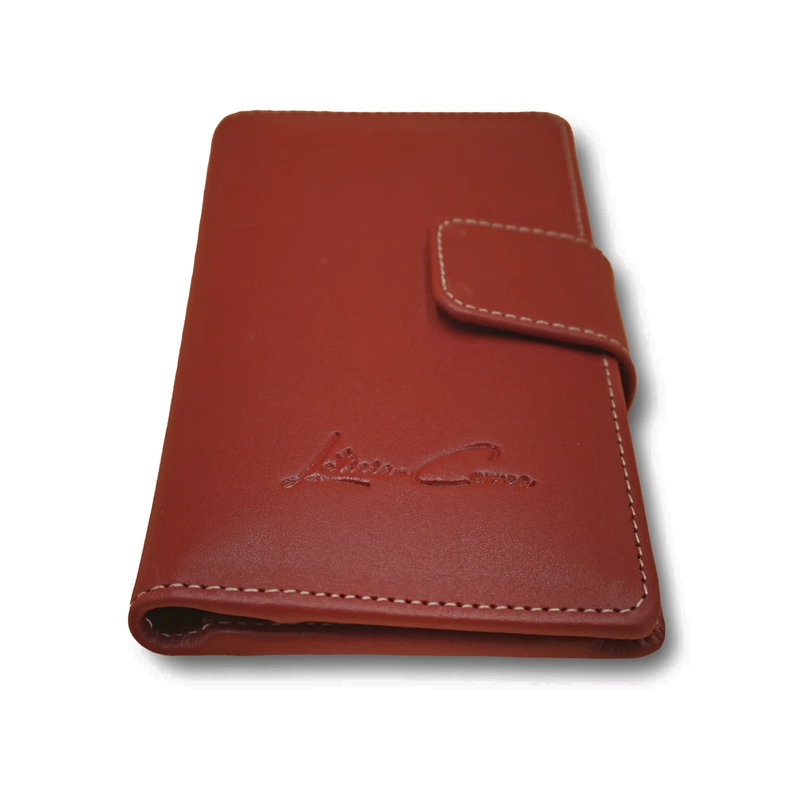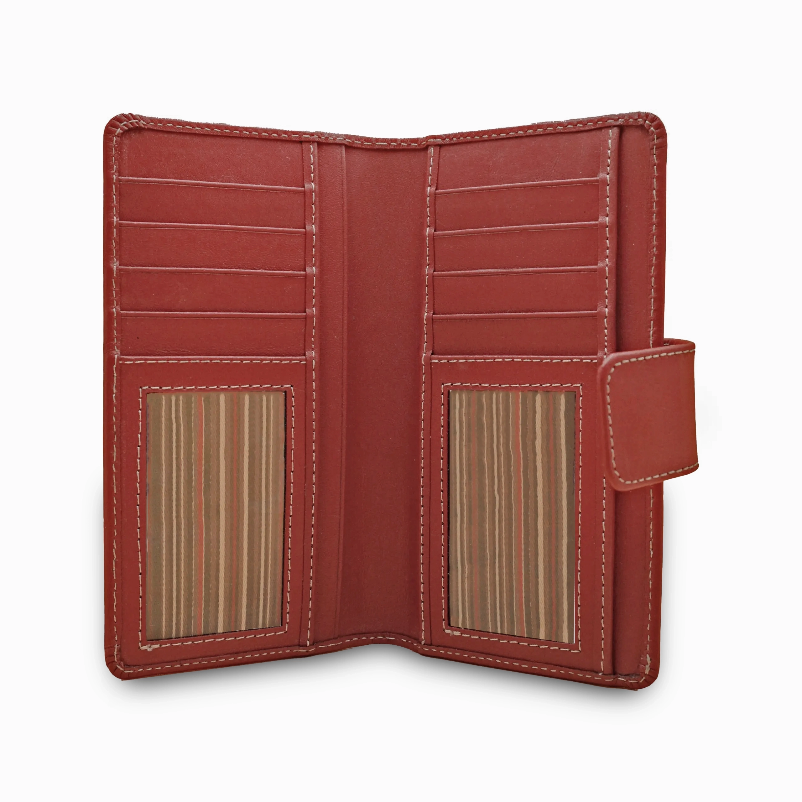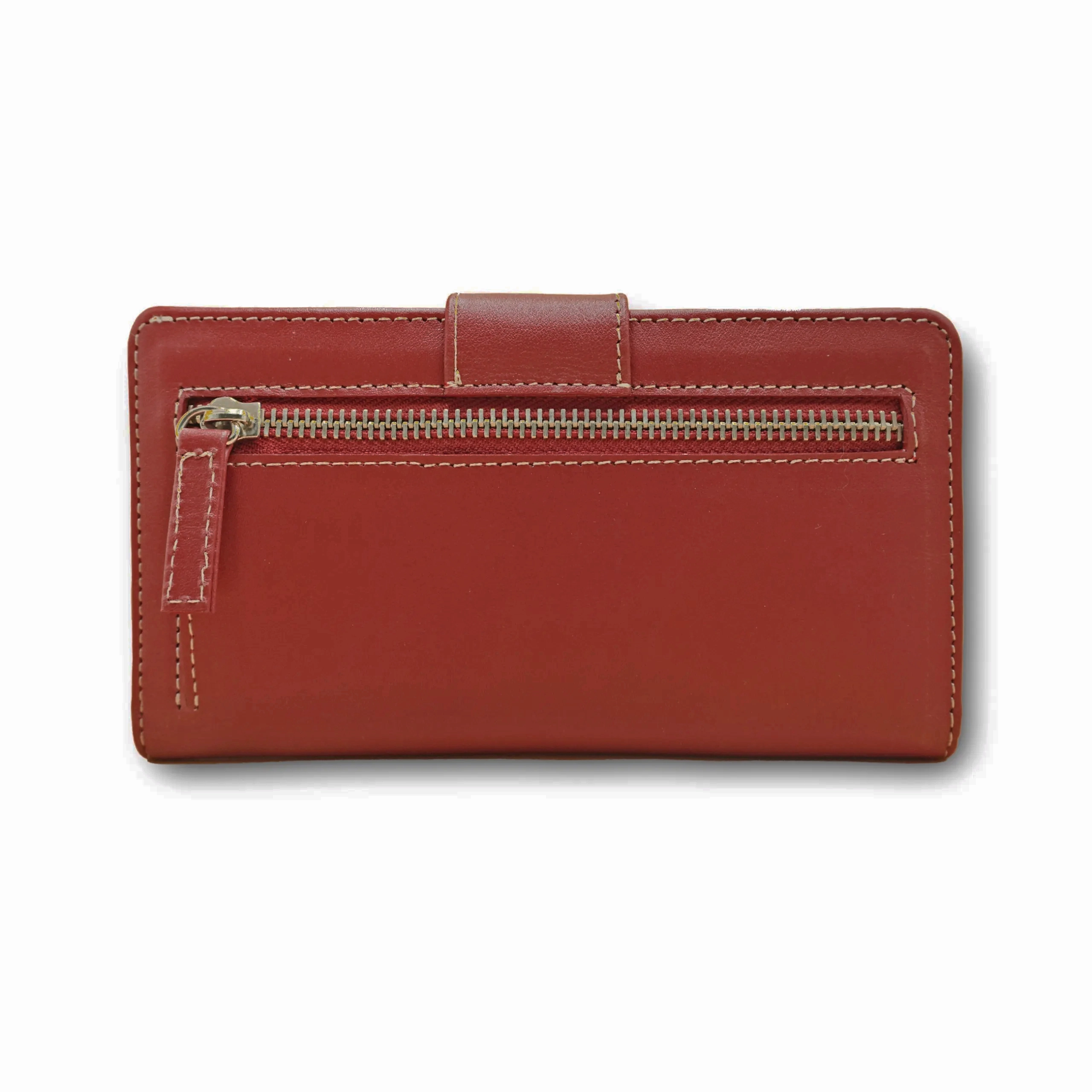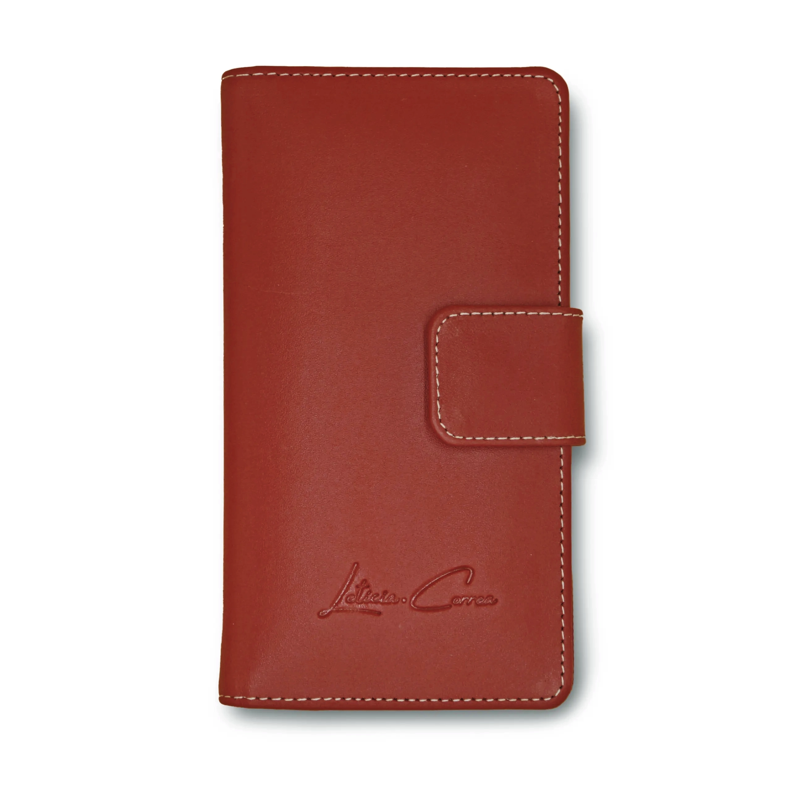 Cartera de piel Nappa en color roja, confeccionada con cuero de res seleccionado por su suavidad al tacto y resistencia natural.